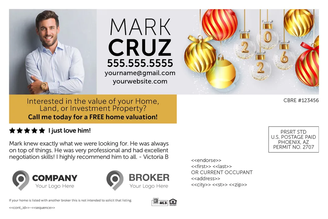 Our New Year’s Postcards encapsulate the essence of celebration and renewal, offering a perfect blend of festive exuberance and sophistication to leave a lasting impression. These meticulously designed 6×9 postcards are tailored specifically for real estate agents seeking to infuse the holiday spirit into their client interactions. Explore the magic of New Year with our thoughtfully curated templates, each going beyond mere greetings to evoke a sense of joy and anticipation.