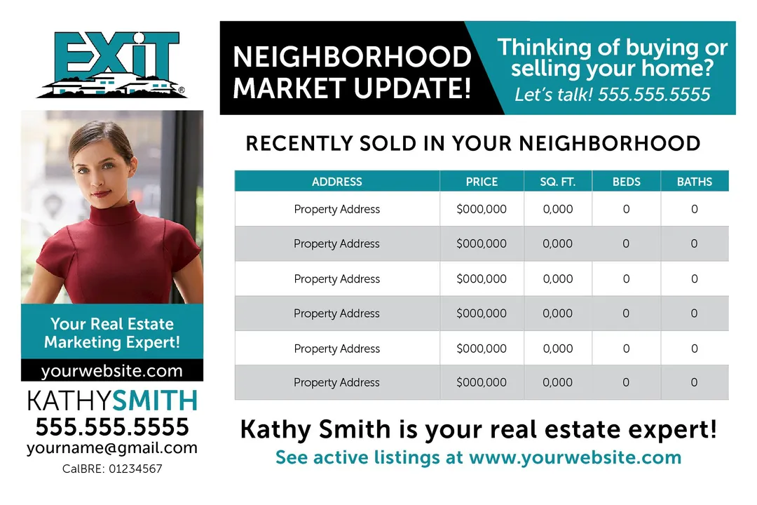 EXIT Realty postcards are a powerful way to build brand recognition, generate leads, and stay top of mind in your community. Printed in full color on premium 6″ × 9″ cardstock, these postcards deliver your message with clarity, confidence, and EXIT’s signature energy.