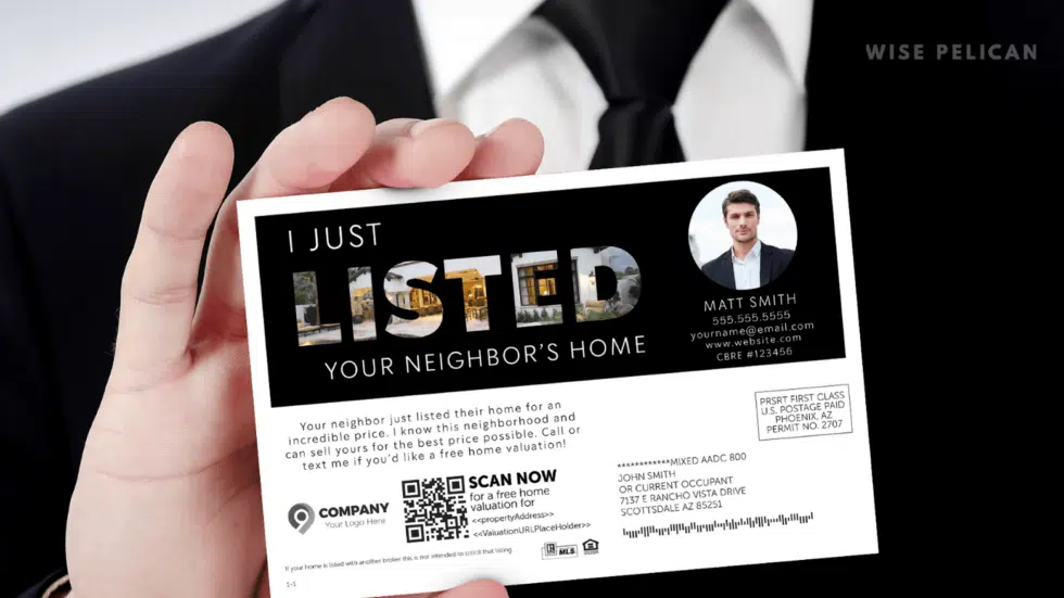 Results vary by agent, but Bree regularly sees listings and high-quality leads generated directly from print campaigns executed through Wise Pelican. In one recent example, an agent sent a Just Listed postcard tied to a local charity. The postcard invited neighbors to an open house while also encouraging them to bring donations for a local pet rescue. Instead of being thrown away, the postcard was saved โ and brought to the event.
